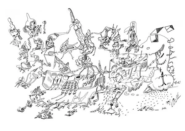 Joke Neyrinck (°1982), de vrouw van Augustijn Vermandere, werkt onder de naam Jook Doodle en woont in Oostende. Haar praktijk beweegt zich op het snijvlak van tekenen, schilderen en performatief tekenen, met een uitgesproken eigen beeldtaal die zowel intuïtief als gelaagd is.