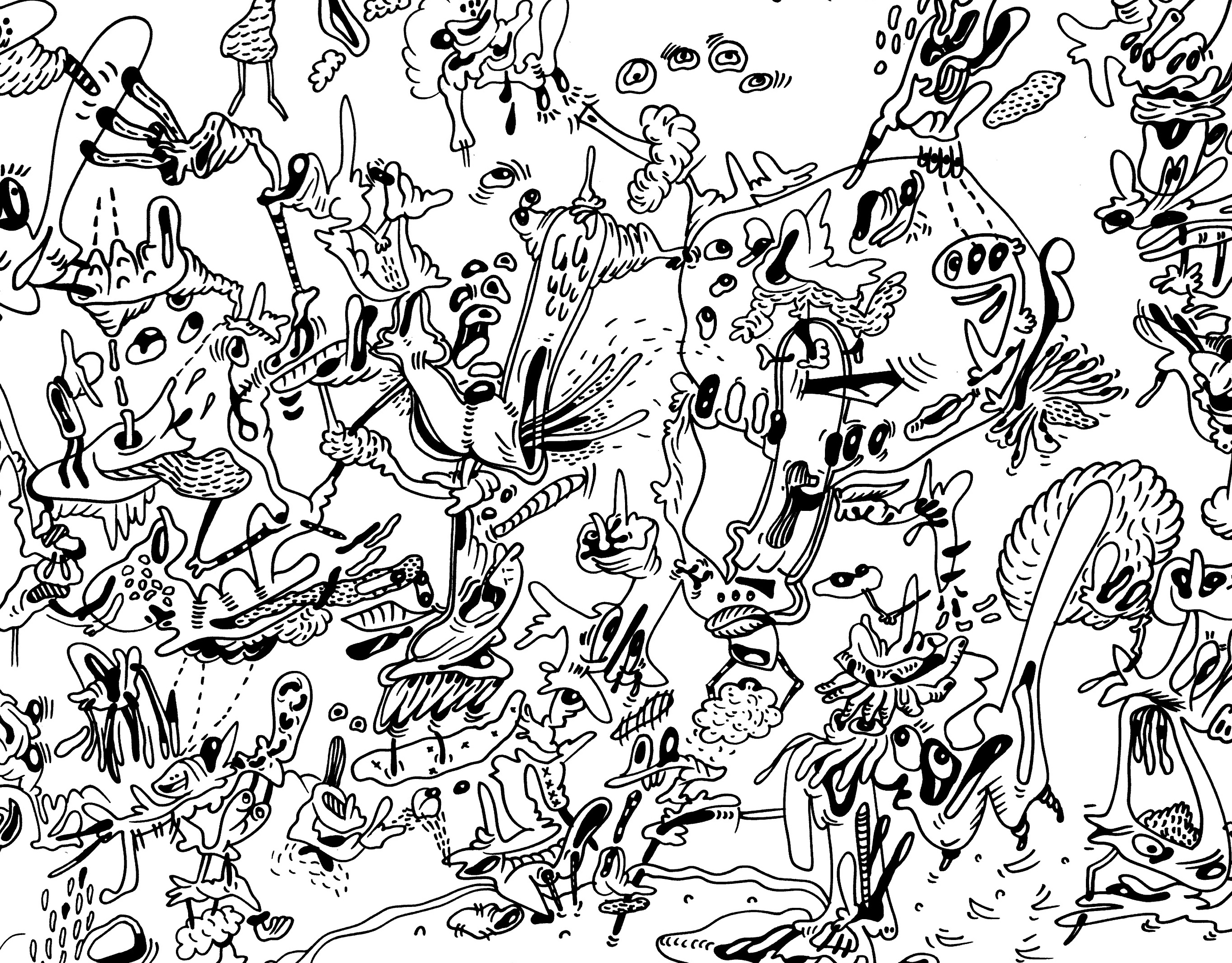 Jook Doodle werkt zowel autonoom als in opdracht. Ze maakt tekeningen en schilderijen op papier en doek, vaak opgebouwd uit spontane, repetitieve lijnbewegingen — wat zij zelf “droodles” noemt: tekeningen zonder vooraf vastgelegde compositie of narratief, ontstaan uit een bijna meditatieve staat. Uit deze ogenschijnlijk speelse chaos groeien figuren en taferelen die balanceren tussen het abstracte en het verhalende. Haar beeldtaal oogt licht en toegankelijk, maar draagt tegelijk een onderliggende reflectie over menselijke drang, controle, overdaad en verbeelding.